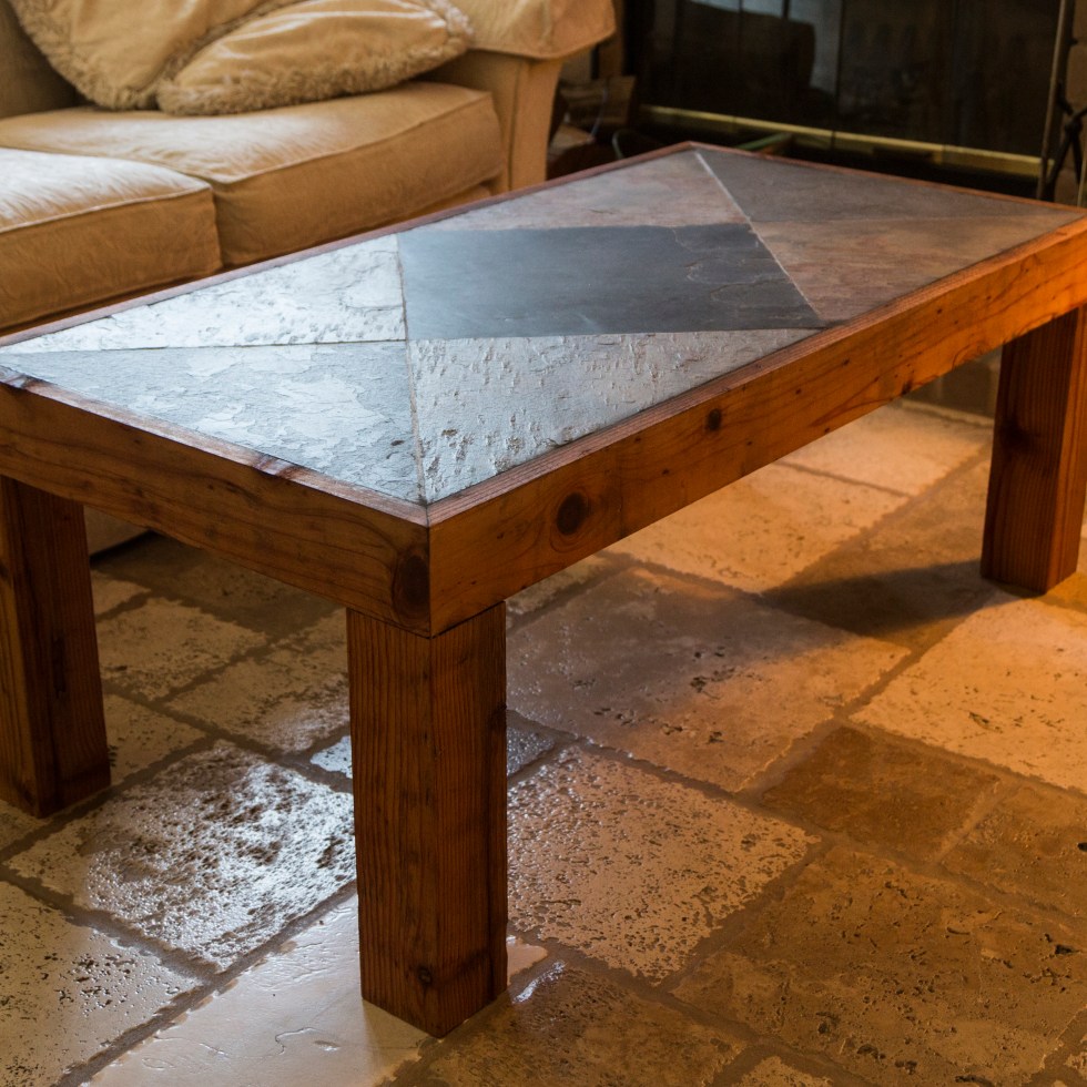 Redwood and Slate Tile Table